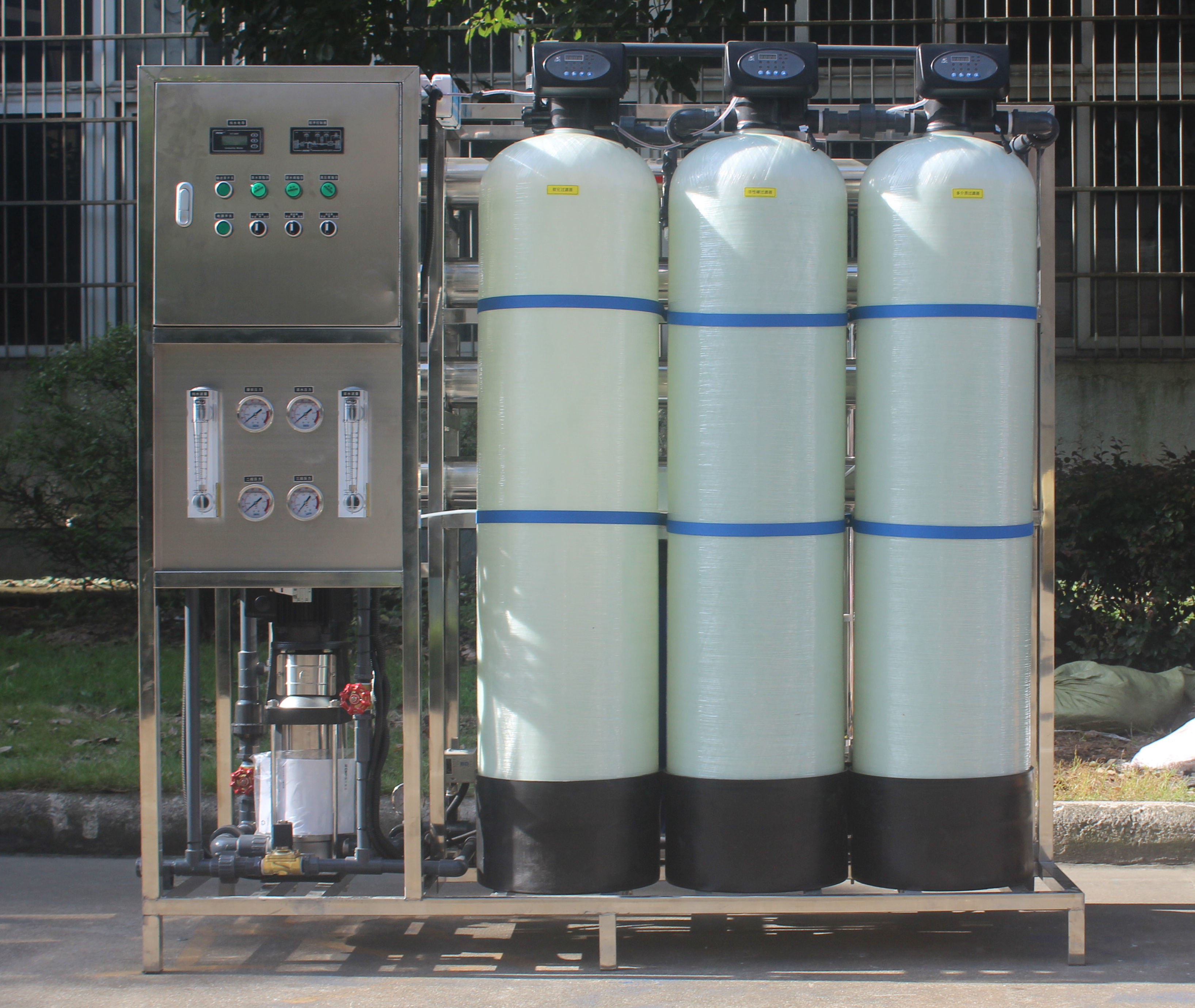 軟化水設(shè)備是由全自動軟水控制器、鹽箱、強酸型鈉離子陽樹脂、樹脂罐(一般為不銹鋼樹脂罐和玻璃鋼樹脂罐)、以及軟水器配件組成。通過水的流量和時間控制的方式發(fā)出指令給電磁閥或多路通伺服閥,來完成軟化水設(shè)備的供水和再生,是工業(yè)鍋爐、冷卻循環(huán)水、煉鋼、軋鋼、大型變壓 器、民用熱水鍋爐等場合中應(yīng)用最為廣泛的硬水軟化處理設(shè)備。