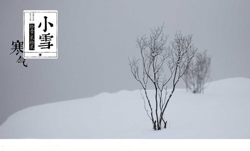 我國地域遼闊,“小雪”代表性地反映了黃河中下區(qū)域的氣候情況。這時北方,已進(jìn)入封凍季節(jié)。“荷盡已無擎雨蓋,菊殘猶有傲霜枝”,這時已呈初冬景象。