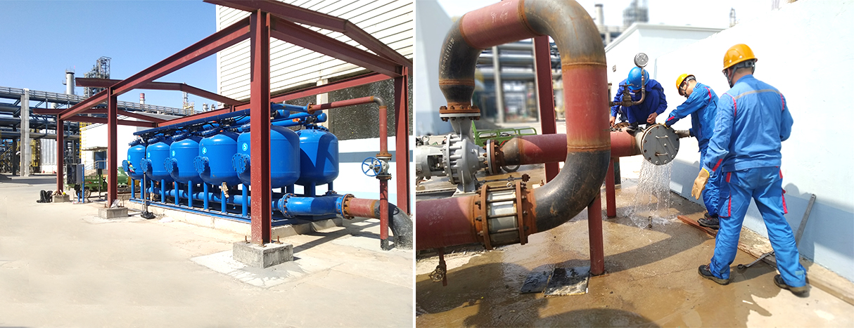 項(xiàng)目描述:主要過(guò)濾掉從長(zhǎng)江中引入的小魚(yú),小蝦,及細(xì)小雜物,確保引入到船閘中的水清潔干凈,我司技術(shù)工程師所帶領(lǐng)的團(tuán)隊(duì),根據(jù)其現(xiàn)場(chǎng)的整個(gè)過(guò)濾系統(tǒng)制定相應(yīng)的解決方案,將淺層砂過(guò)濾器主體安裝于船舶外部,設(shè)備擺放整齊,經(jīng)過(guò)過(guò)濾后的水質(zhì)完全符合標(biāo)準(zhǔn)及客戶(hù)的要求,最終順利驗(yàn)收,該設(shè)備自運(yùn)行以來(lái),狀況良好。