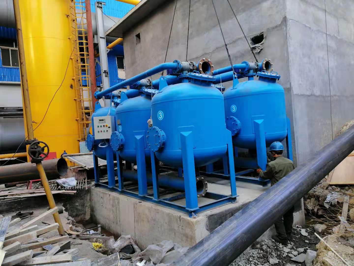 4、反洗水源可選系統(tǒng)內(nèi)、水塔或外源水源,并可自動切換(特殊要求時)。反洗效率高,反洗時間短。(水量是傳統(tǒng)砂濾器的30%左右)