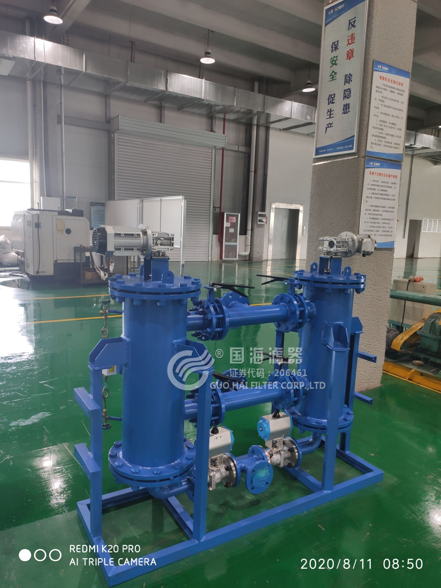 新鄉(xiāng)市國海濾器有限公司生產(chǎn)的DN350循環(huán)水自清洗過濾器污水處理設備中一種利用濾網(wǎng)直接攔截水中的雜質,去除水體懸浮物、顆粒物,降低濁度,凈化水質,減少系統(tǒng)污垢、菌藻、銹蝕等產(chǎn)生,以凈化水質及保護系統(tǒng)其他設備正常工作的精密設備。當水由進水口進入自清洗過濾器機體,由于智能化(PLC、PAC)設計,系統(tǒng)可自動識別雜質沉積程度,給排污閥信號自動排污。